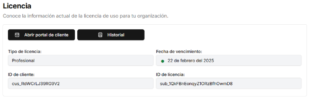 Al finalizar, su licencia cambiará a Profesional y la fecha de vencimiento se renovará con 30 días a partir de la fecha de la operación.