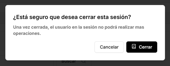 Haga clic en el botón Cerrar para finalizar. Después de ello, el usuario en la sesión no podrá realizar más operaciones de venta y el estado de la sesión cambiará a Cerrada.