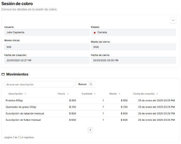 Finalizar una sesión de cobro