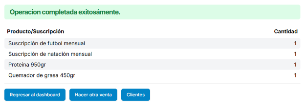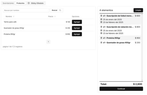 Si usted desea acceder al punto de venta únicamente para vender algún producto, puede hacerlo a través del Menú de aplicación > Punto de venta. La interfaz necesaria para vender únicamente productos (sin asociar suscripciones a clientes) se presentará y podrá completar la operación de manera práctica.